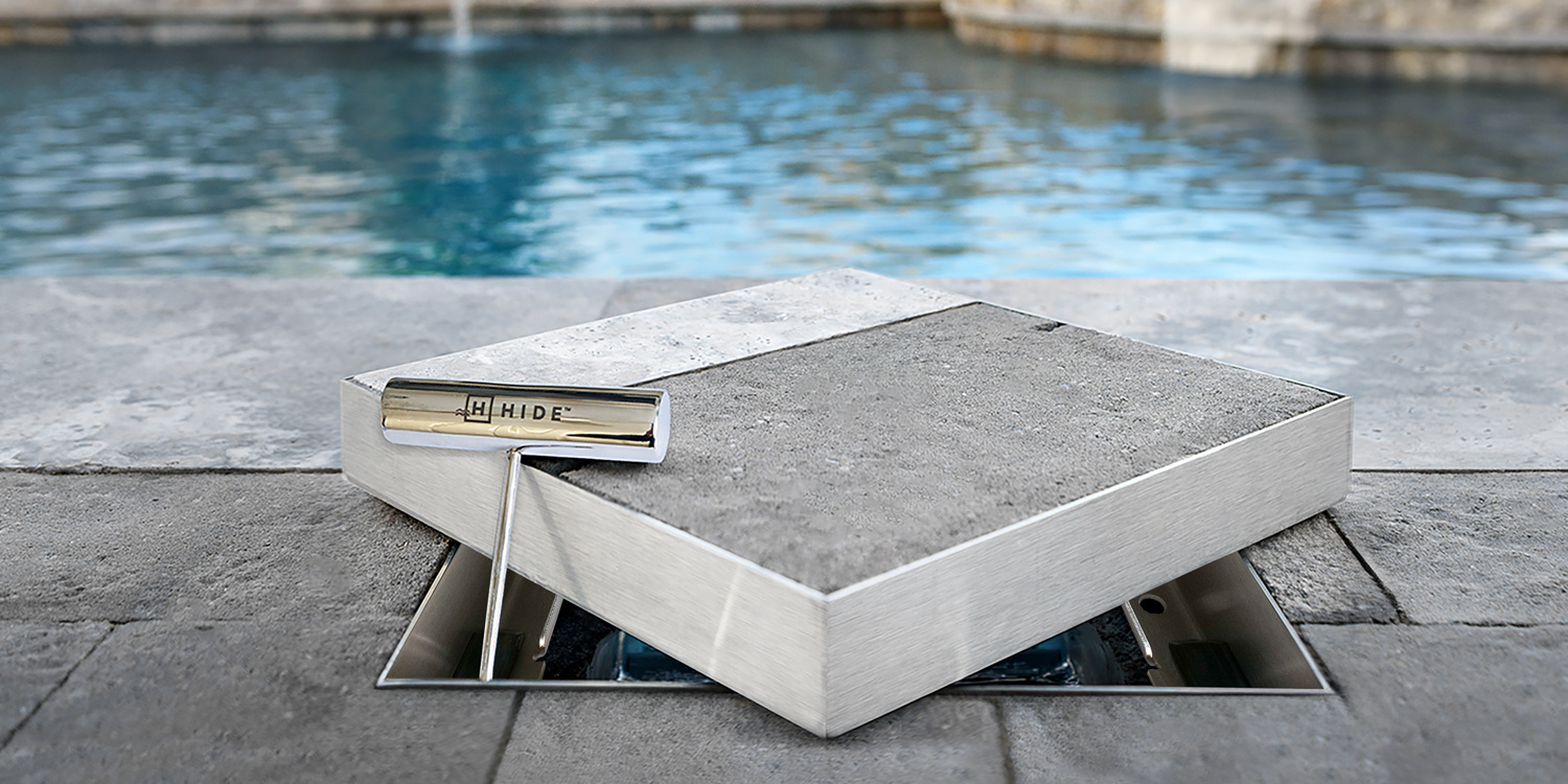 One of the standout features of HIDE Skimmer Lids is their seamless integration with the surrounding pool landscape. HIDE Lids can be inlaid with the same material as the pool deck, making them virtually invisible and enhancing the overall aesthetic and function of the pool surroundings.